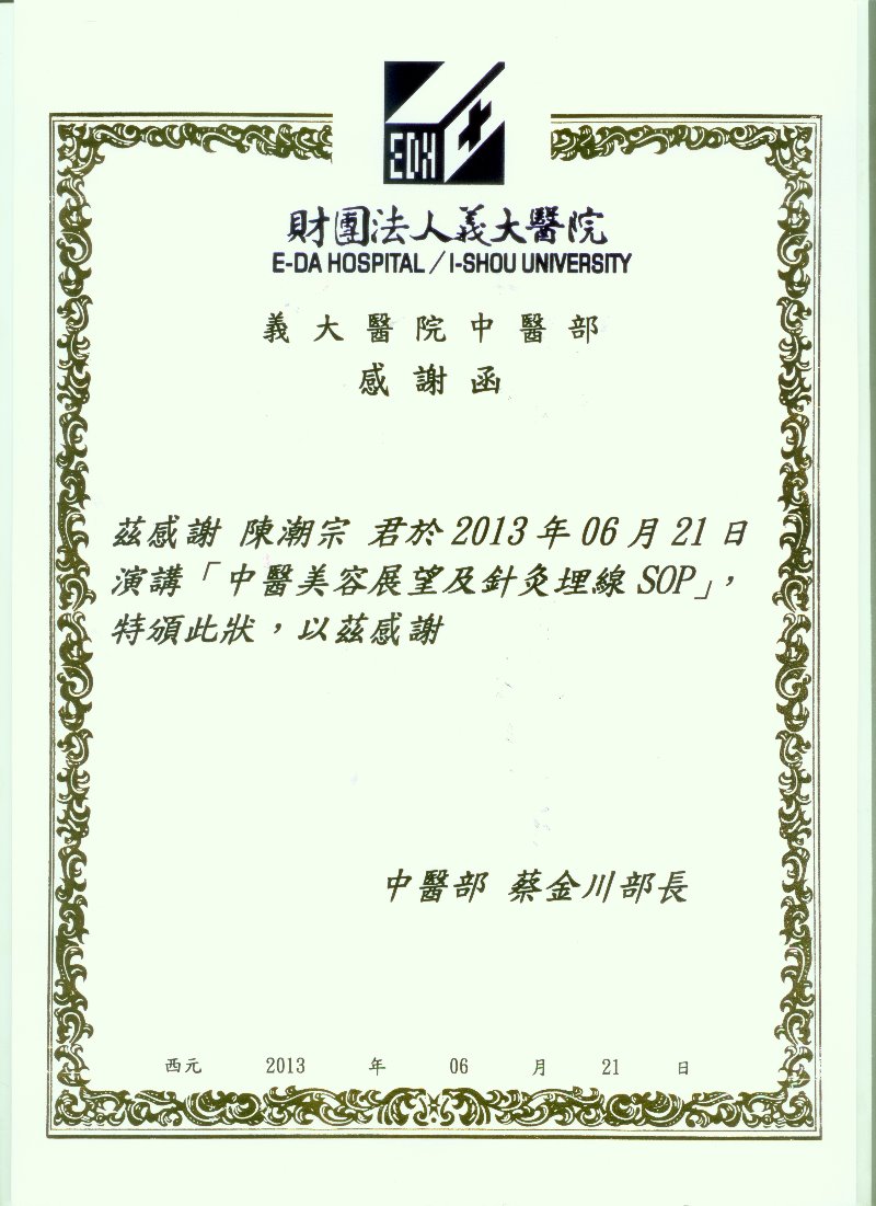 陳潮宗醫師向高雄義大醫院中醫部所有醫師講演中醫醫學美容課程
