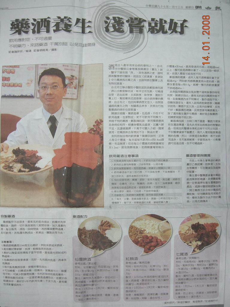 酒是古人最早用來治病的發明之一,台北市中醫師公會理事長陳潮宗說,醫字下頭有個「酉」,酉有通酒之意,證明酒與醫學密切關係,班固在《前漢書 •食貨誌》中力薦酒為百藥之長,也說明酒在醫療上具有特別意義。 台北市立聯合醫院中醫院區院長鄭振鴻也說,酒以水穀發酵而成,味辛甘而性熱,可暢通血管、活血祛寒、去風散寒、除胃寒,還能引藥上行,幫助藥效迅速發揮, 結合酒與藥的藥酒,自古有之,也因為藥酒歷史悠久,坊間普遍視為養生之物,相關產品眾多,民眾自行泡製藥酒的情形也很普遍。 陳潮宗提醒,藥酒是藥、也是酒,不但不可飲用過量,也要對症,更不可飲用不明藥方、來路不明的藥酒。鄭振鴻則說,使用藥酒應與自身病症相符,根據身體氣血盛衰、五臟六腑不足,宜謹慎選擇,千萬不可聽人介紹,隨便使用,若藥酒與自身情況不合,無益反害。 如何控制合理的飲酒量?陳潮宗說明,正常人每公斤體重,每次或每天飲用 0.6到0.8ml酒精,有益無害;但若每公斤體重的酒精量增加至1.2ml,就有 微醉現象;若酒精量增到每公斤體重4至6ml,就有昏迷的可能;若超過6ml以上,極可能是酒精中毒了。以上泛指一般狀況,依個人體質可能有所不同。 鄭振鴻則建議,成年人每天酒精攝取量不宜超過 20g,例如飲用酒精濃度為50度的酒,酒精含量是每cc有0.5g,那麼一整天的飲酒量便不該超過40cc。 民眾服用藥酒後出現身體不適現象事件時有所聞,陳潮宗指出,最常見的原因藥酒來路不明,如果藥酒內含不明藥材、製作過程不明,很難保證安全。還有人認為酒 愈陳愈香,陳潮宗認為,藥酒不宜久放,以免內容變質,反而不好。鄭振鴻也建議,民眾想要用藥酒養生,除了選用衛生署許可藥酒,最好是自製藥酒,別購買來路 不明之物。 鄭振鴻也說,古時工商不發達,藥酒方便保存及運送傳遞,是先民用來治病補身的智慧結晶,但現在的醫療水準和古時不可同日而語,不但醫療資源不餘匱乏,現代 人還面臨營養過剩的危機,所以,即使是自製藥酒,都不宜飲用過多,冬天氣候較寒,手腳易冰冷,小酌藥酒可促進血循,但不可補過頭。 飲用藥酒注意事項 1.市售藥酒應有衛生署許可,不飲用來路不明的藥酒。 2.飲用前注意有無變質、汙染等現象,以免中毒。 3.飲用後禁服藥物,特別是西藥,建議至少間隔24小時。 4.飲用藥酒後不宜立即行房、不可頂風受寒、不宜食酸物、不宜立即針灸、避免進食奶水或茶品。 5.有心血管疾病、癲癇、肥胖、老年失智症、高血壓、過敏性體質、皮膚病、肝炎、腎臟病、咳嗽、及十二指腸潰瘍、糖尿病患者及陰虛血熱症者,過度飢餓者,不宜飲藥酒。 6.婦女懷孕、哺乳、行經時,不宜飲用藥酒。 7.年齡愈大,則新陳代謝愈慢,服用藥酒宜減量。 8.「每天、少量」是藥酒基本飲法,建議一小杯做20至30小口,慢慢嚥下,靜下來,感覺藥酒的流動,緩緩使藥入腹。 藥酒管理與購買 市面上有衛生署藥證的藥酒屬於乙類成藥,如參茸、五加皮等藥酒,可在雜貨店及超商中販賣。 衛生署中醫藥委員會中藥組組長陳崇哲建議,民眾購買藥酒一定要選擇有衛生署藥證的產品,或請中醫師辯證論治後,開立藥酒方至合格中藥房抓藥配製,切勿購買服用來路不明、藥材及製作方法不明的藥酒,以免花錢傷身。 自製藥酒 藥酒製作方法很多,最常見的是冷浸法,將藥材洗淨曬乾後,搗碎、切片後直接投入密閉容器,加入適量的酒,每日搖晃,浸泡一段時間後,再將藥渣壓榨過濾,即可飲用。其他還有熱浸法、煎煮法、釀製法等方法。 注意事項: 1.藥酒酒精濃度以40度左右最好,例如米酒或米酒頭。 2.選用藥材需新鮮,洗淨、乾燥後再來泡酒。 3.最好以陶瓷或玻璃瓶子當作容器,避免陽光照射或灼熱逼烤。 4.泡藥酒的容器要清潔、完好,先用酒沖洗過,再拿來泡藥酒。 5.每天搖晃藥酒容器,使藥材藥性溶出。 6.可加蜂蜜、白糖或冰糖、桂圓肉,使藥酒可口,蜂蜜性平和,可減少對腸胃刺激,有利於保持和提高藥效。 7.藥酒泡製完成後,一定要把藥渣過濾取出,並置於冷暗處保存,最好於1年內飲用完畢;不宜久泡,避免藥性受影響或消失。 |