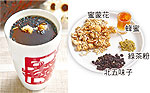 材料:黃耆10克、黑芝麻12克、枸杞20克、首烏15克、澤蘭10克、食鹽10克。 作法: 炒熱食鹽後加入枸杞同炒至枸杞膨脹,去除食鹽,把枸杞與其他材料用5碗水大火煮約10分鐘,關火後再浸泡10分鐘,濾渣後當茶飲用。 作用:黃耆補氣調身、黑芝麻則可補充抵抗力。 |