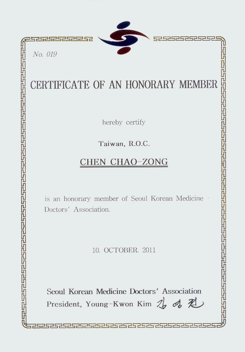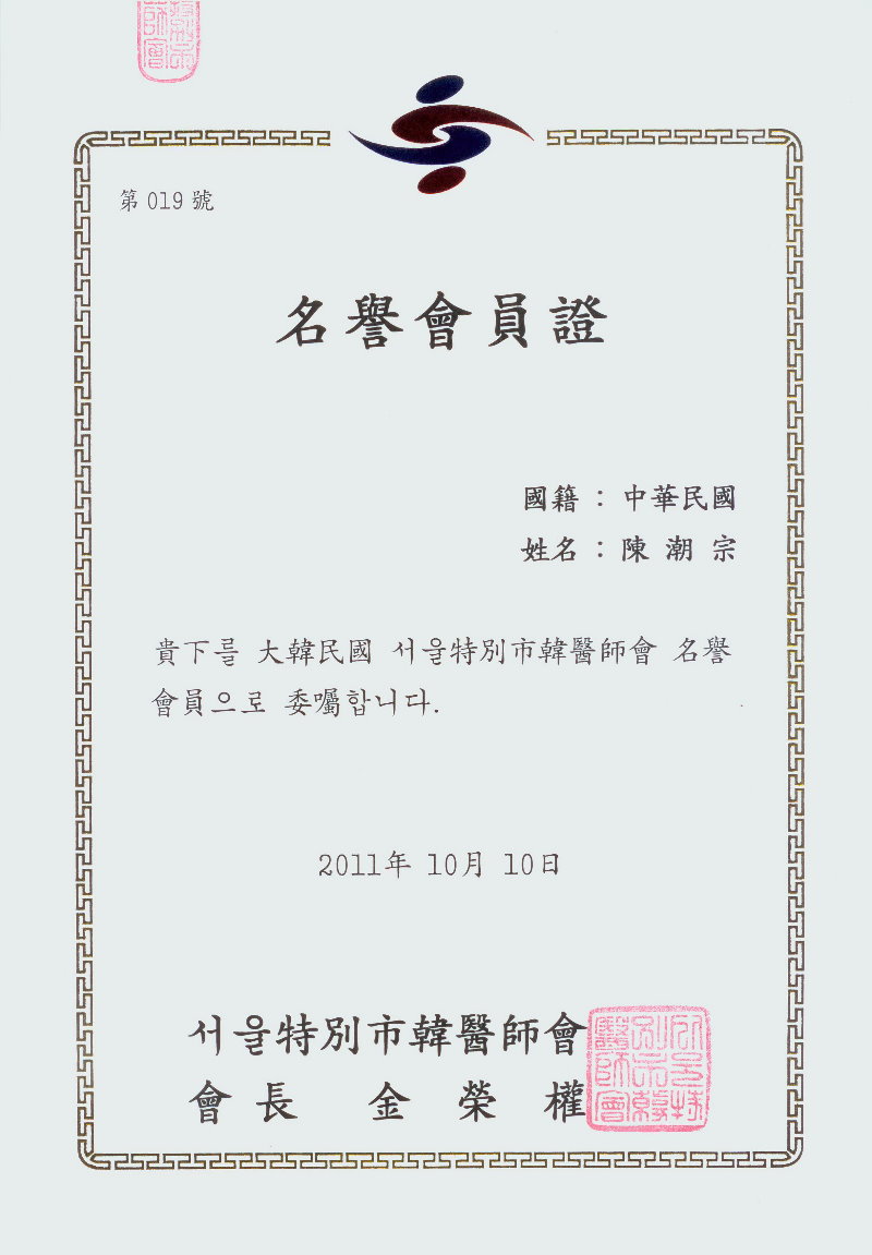 陳潮宗醫師榮聘大韓民國首爾特別市韓醫師會名譽會員
