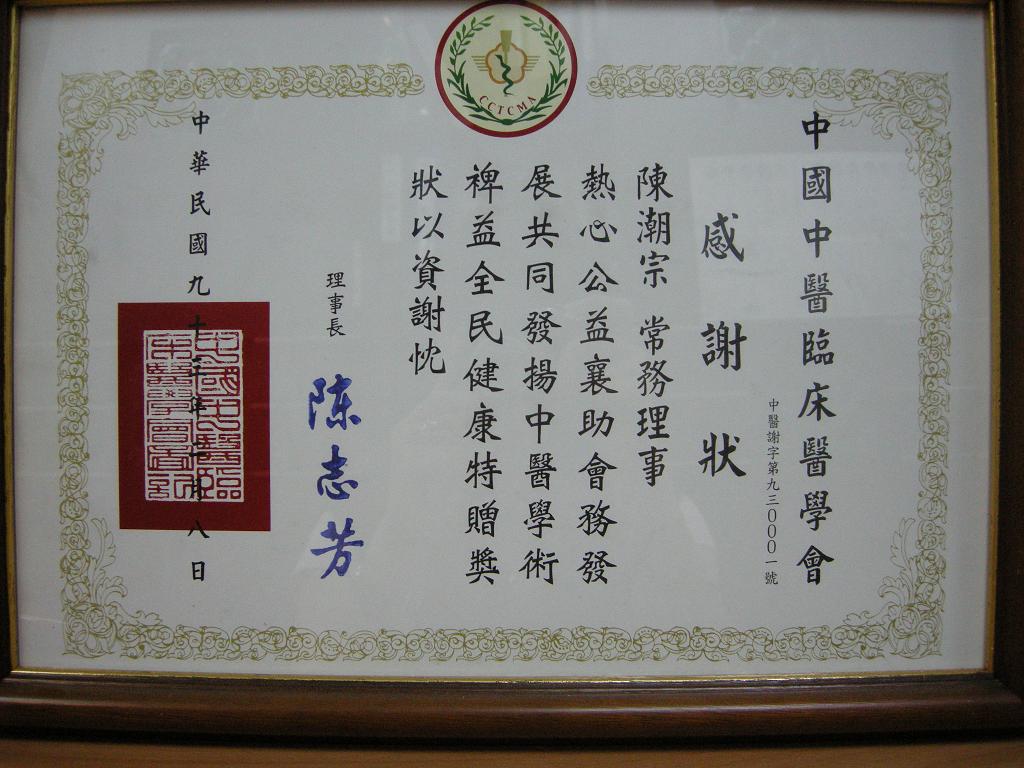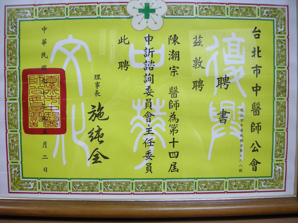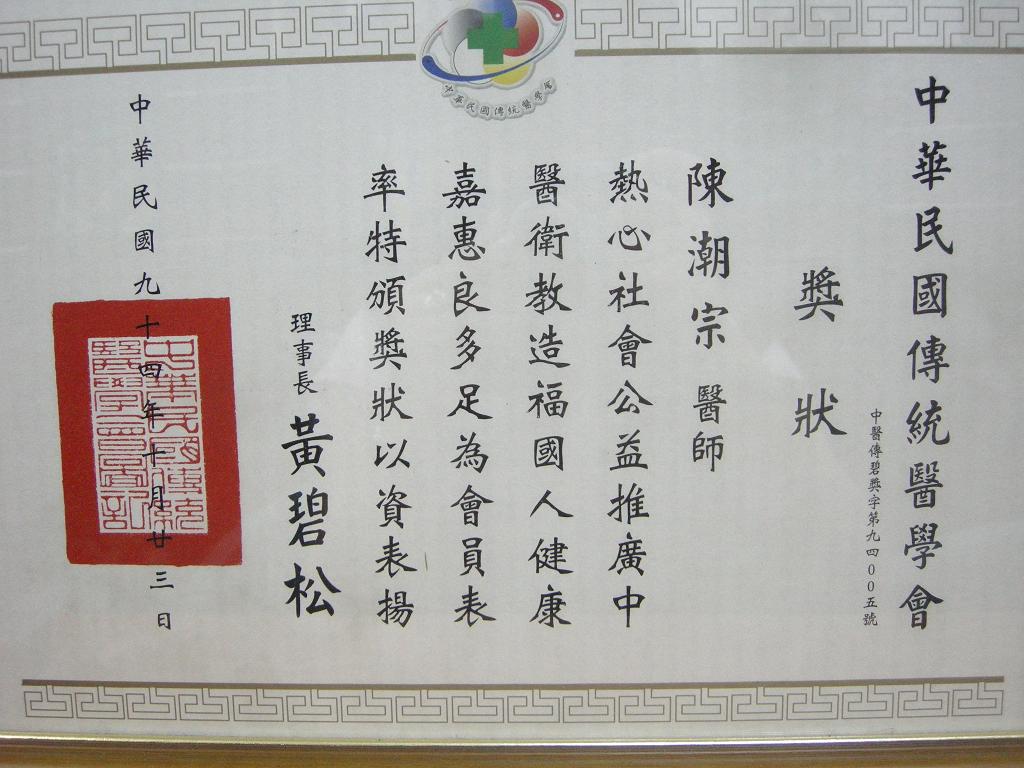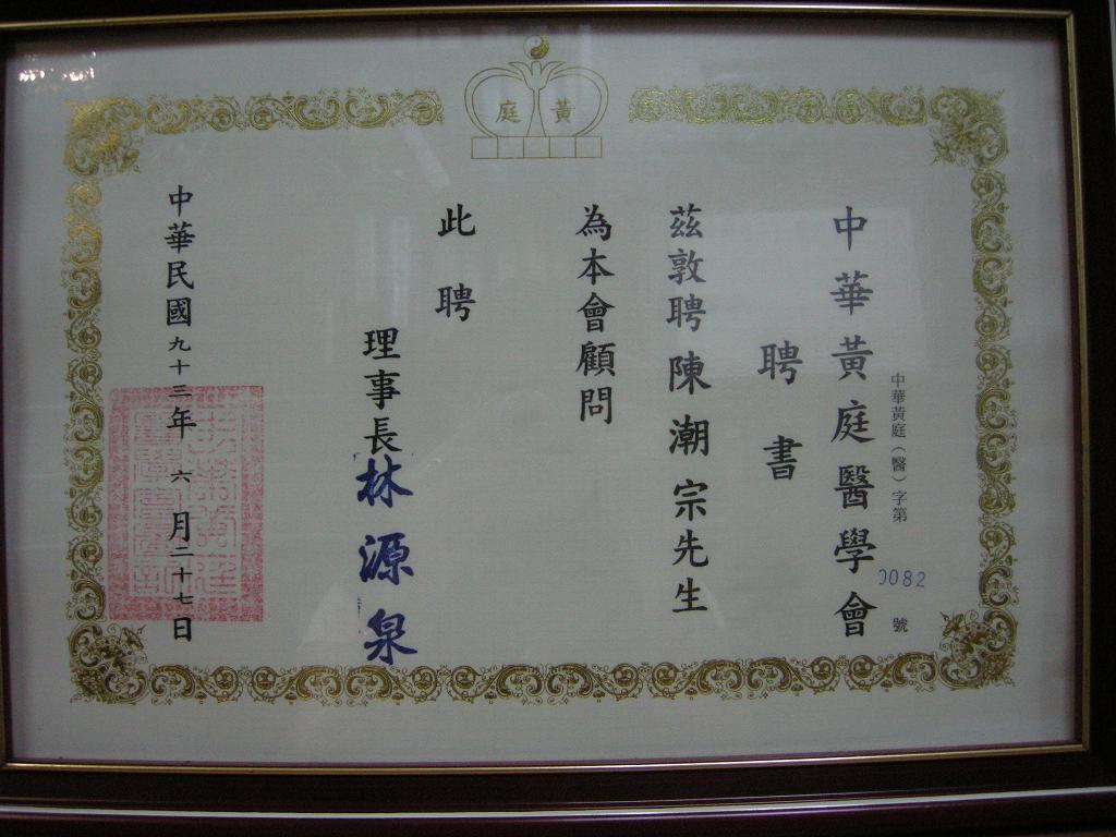 陳醫師歷年得獎獎牌及聘書