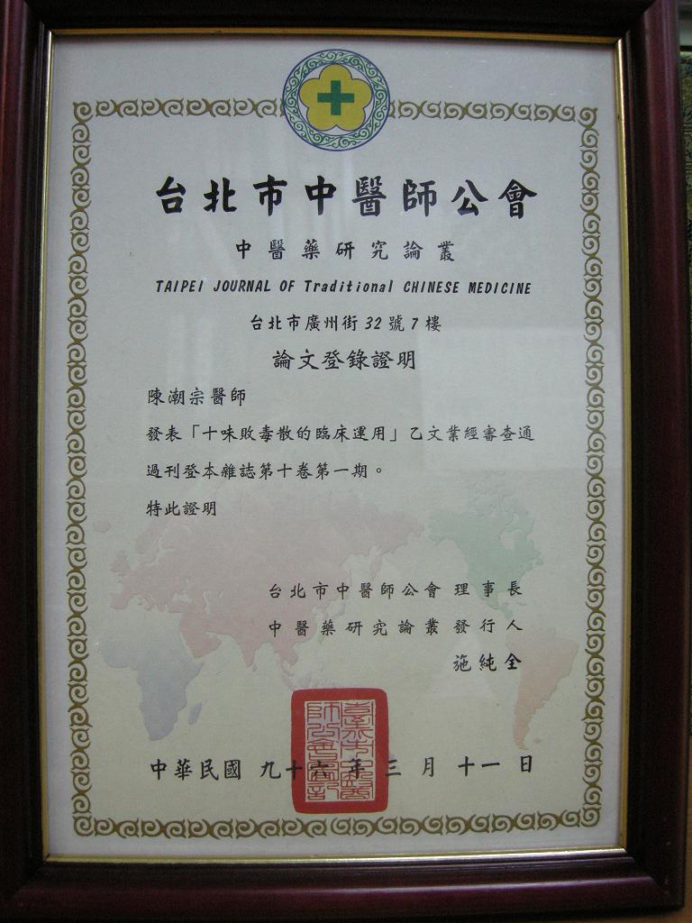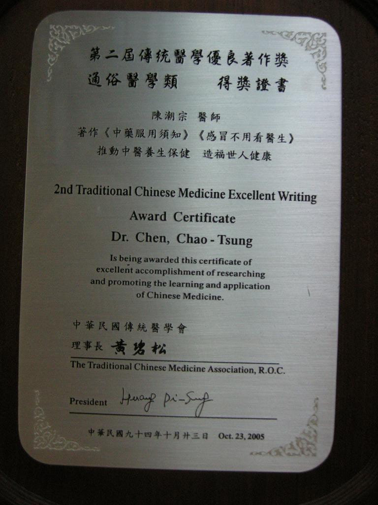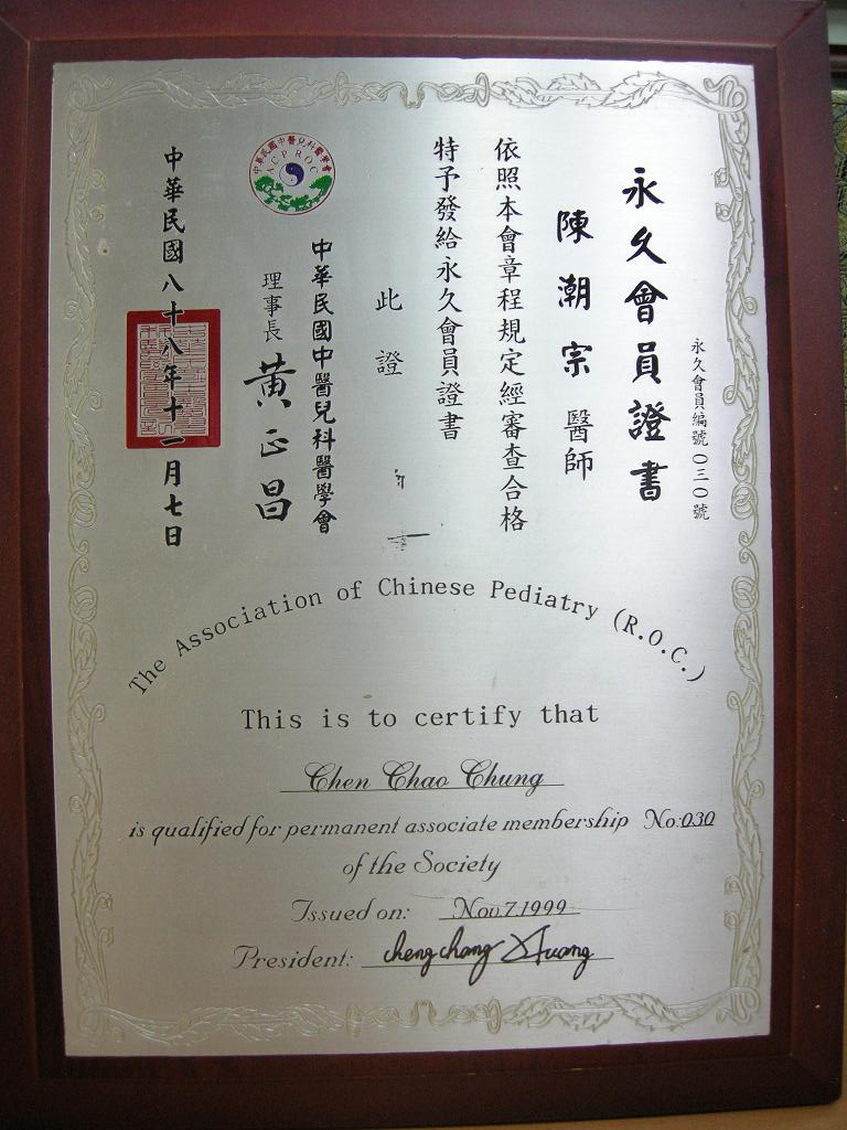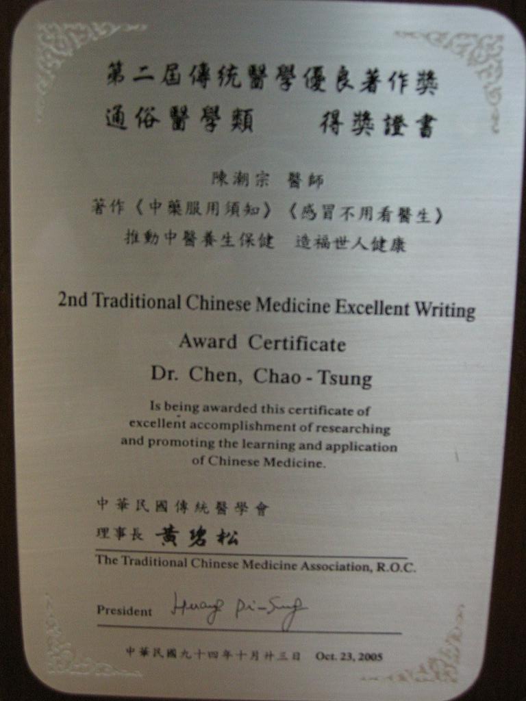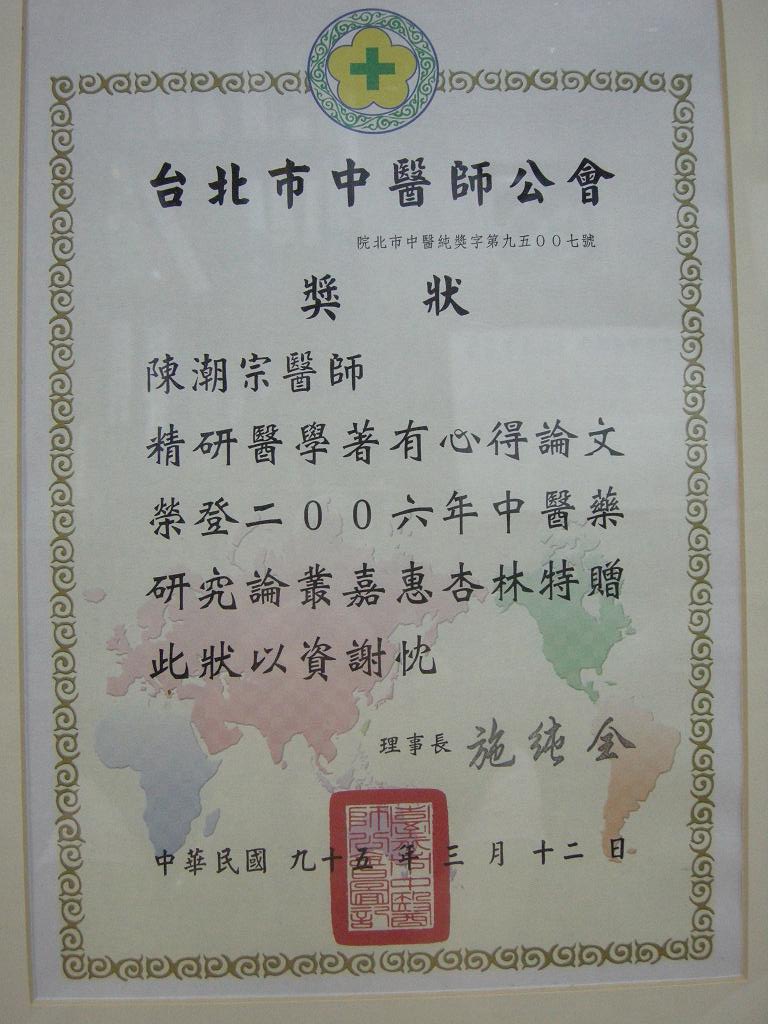 陳醫師歷年得獎獎牌及聘書