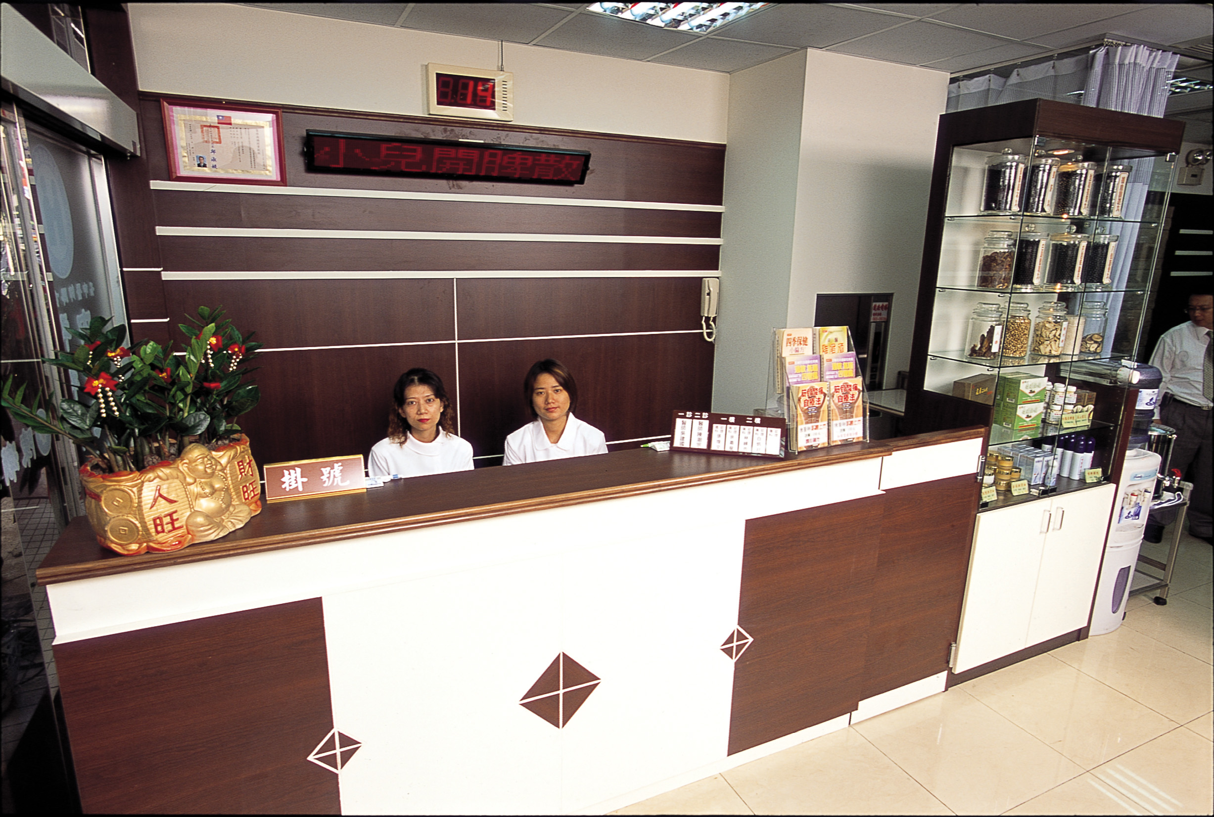 一樓開放式門診櫃檯,為您提供最快速親切的掛號諮詢服務,並可購買由本院精選中藥材調製養生調理品及院長的中醫藥養生著作,讓你在家也能輕鬆照顧自己的健康。除此之外更在候診區提供免費的養生補氣茶及自動血壓計服務,嘉惠社區民眾。 |