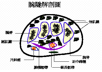 腕管系一缺乏彈性的骨與韌帶纖維構成之隧道,管腔比較狹窄。正常情況下,腕管內屈指肌腱的活動不會妨礙正中神經。