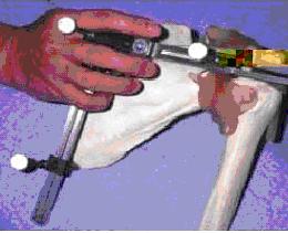 圖 3.3 肩部利用肩胛定位器定位示意圖。