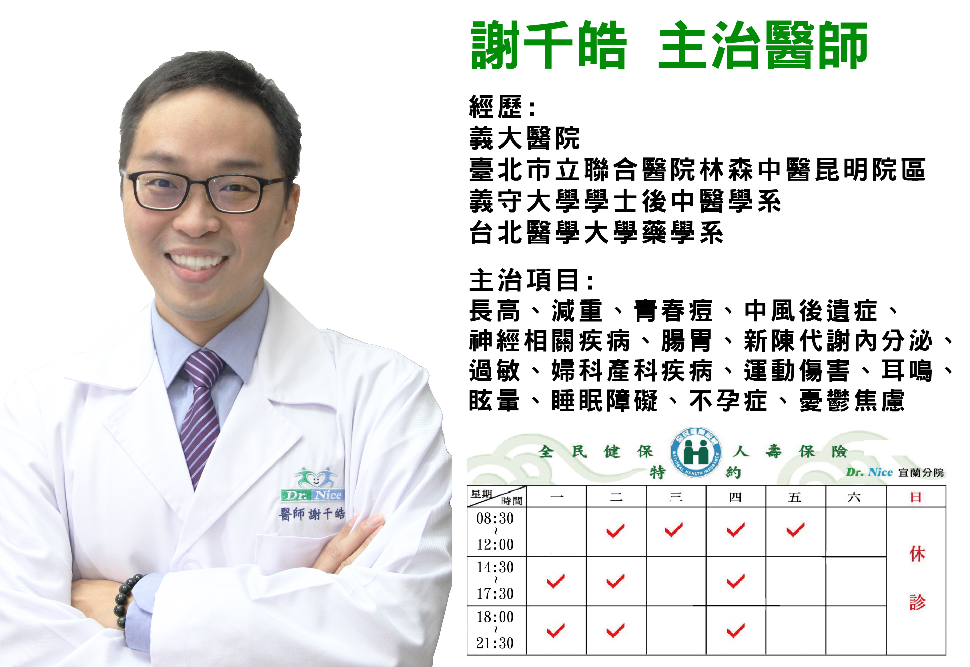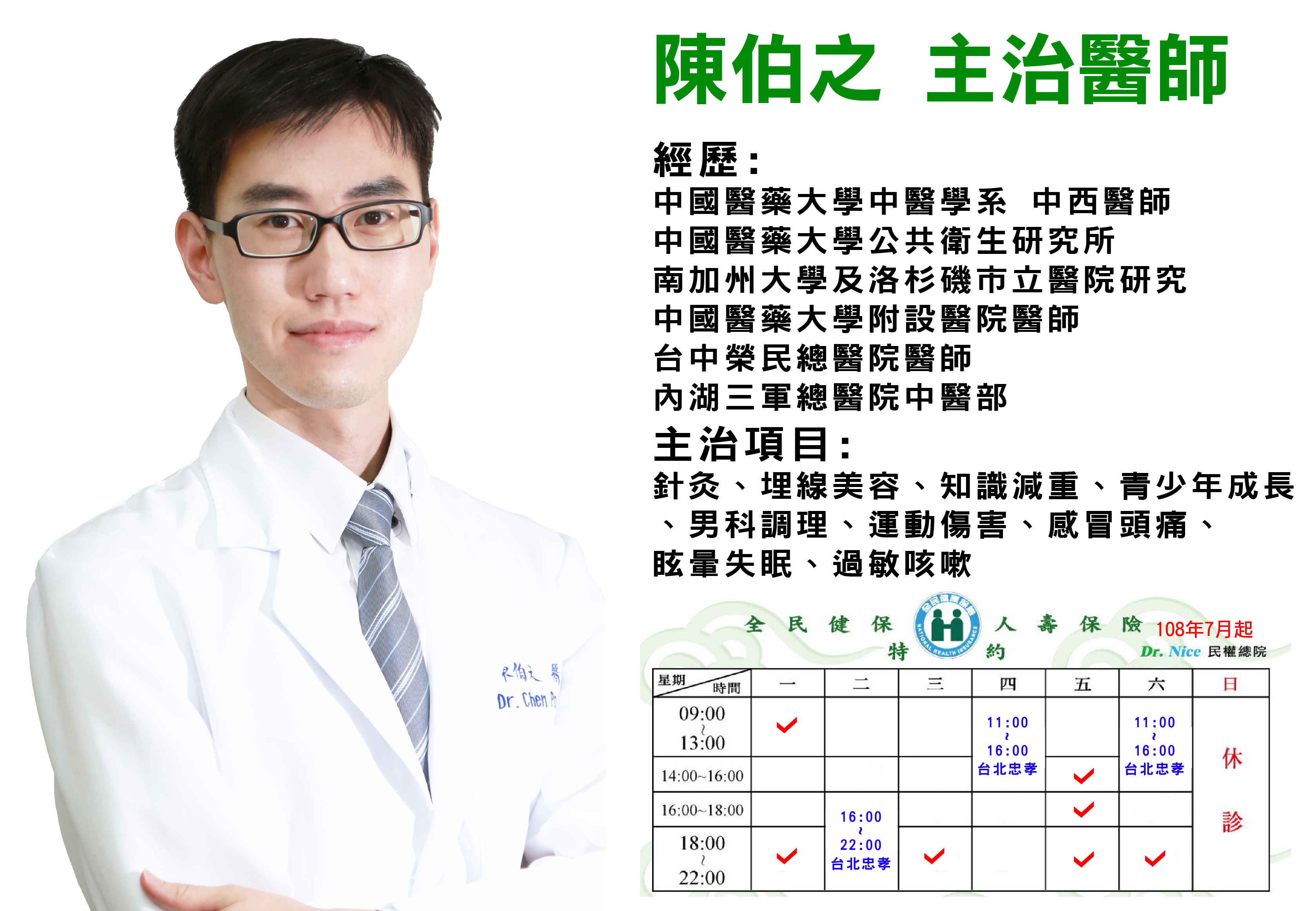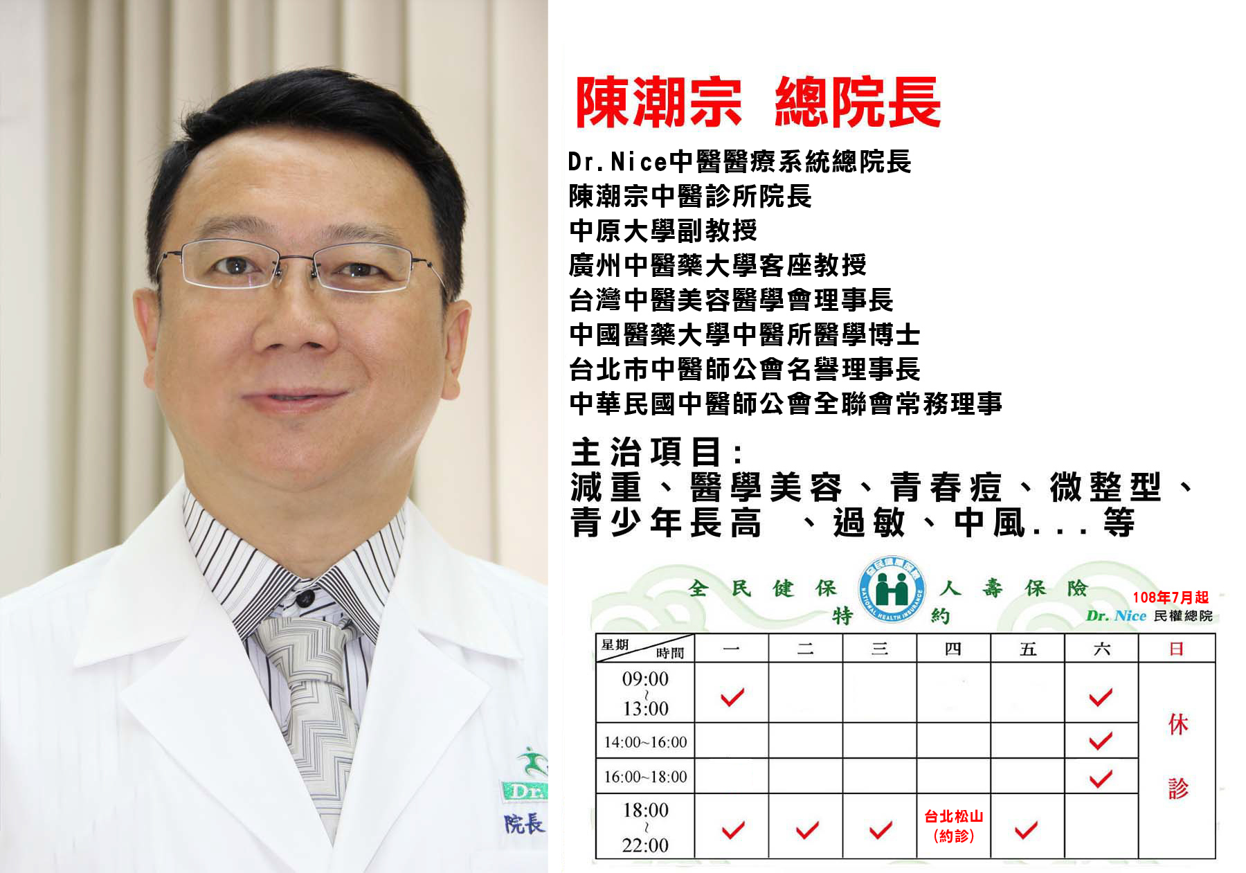 | ★ 中秋佳節~民權、忠孝、松山、宜蘭、台南 五家診所 9/13(五)全日休診、9/14(六)正常門診。 |